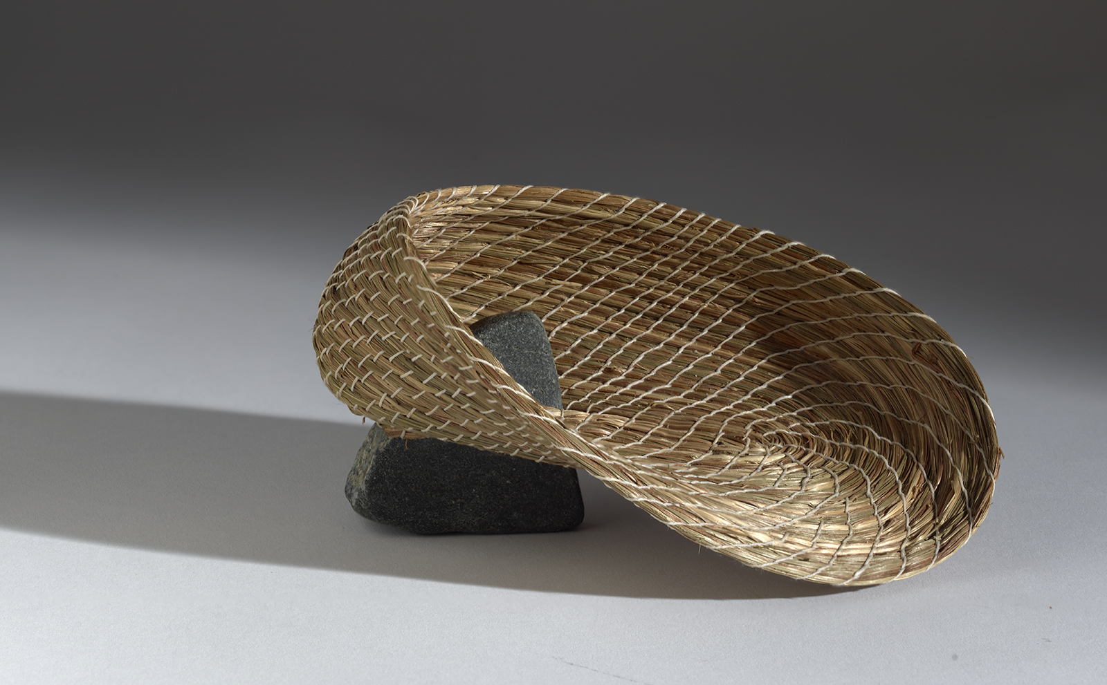sweet grass, found stone, waxed linen thread (coiling, drilling, stitching) 3 x 4 x 6.5 in