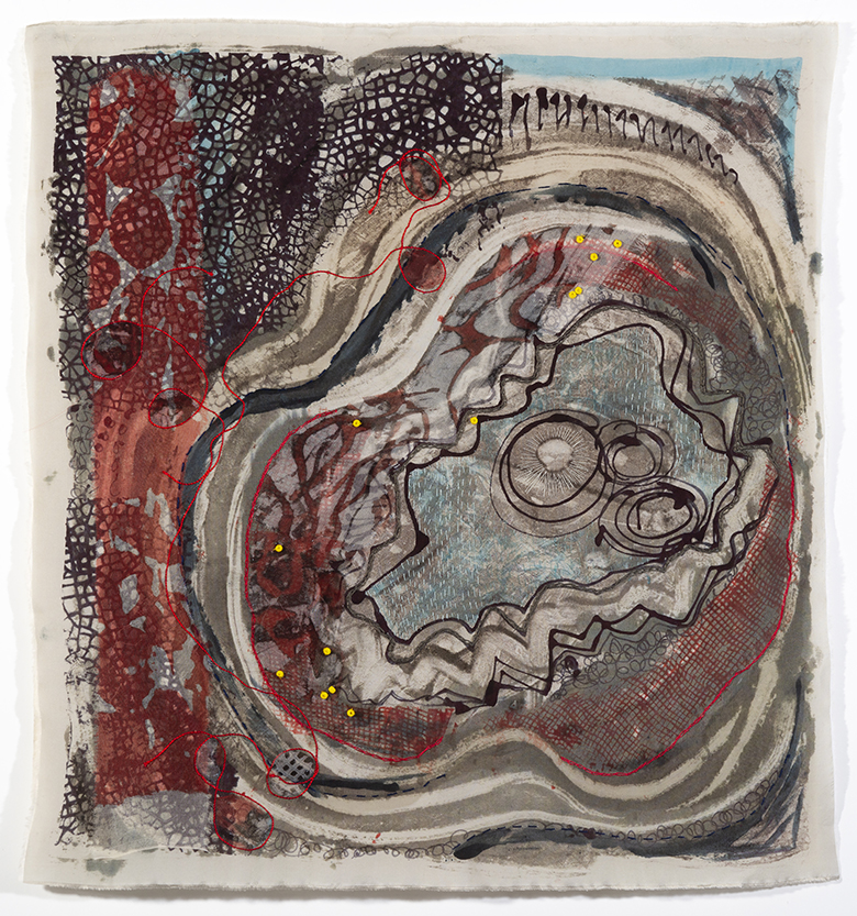 stitched, soldered and painted textiles 57 1/2" X 38"