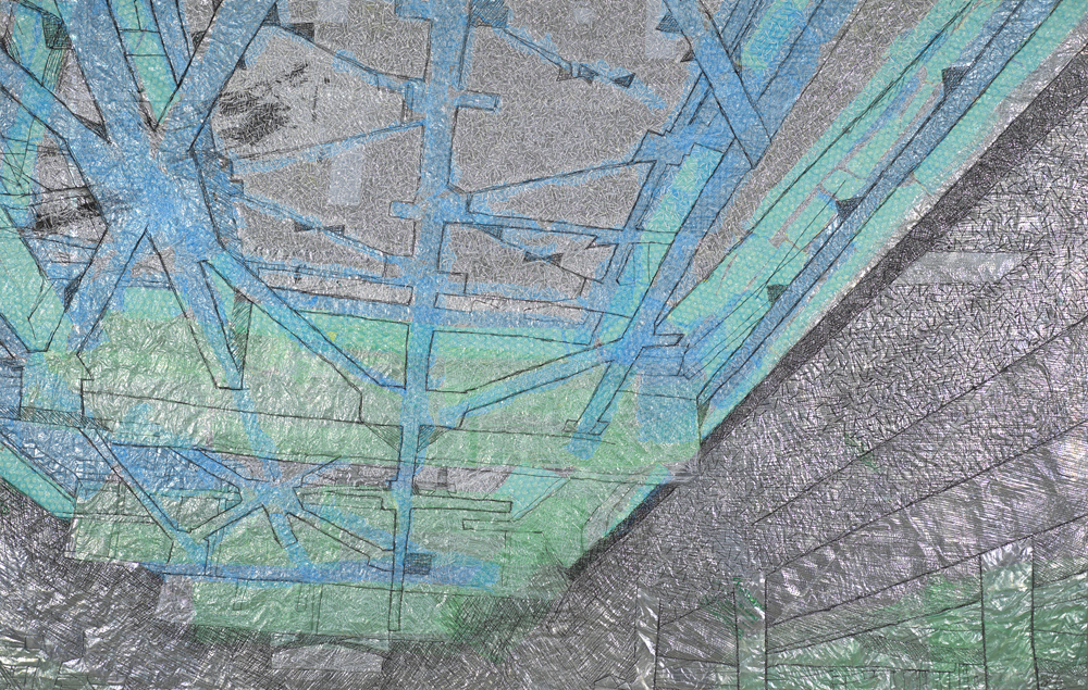 Reclaimed fishing nets/ropes, aluminum, Lucite, deep sea leader line 92" x 44" x 3"