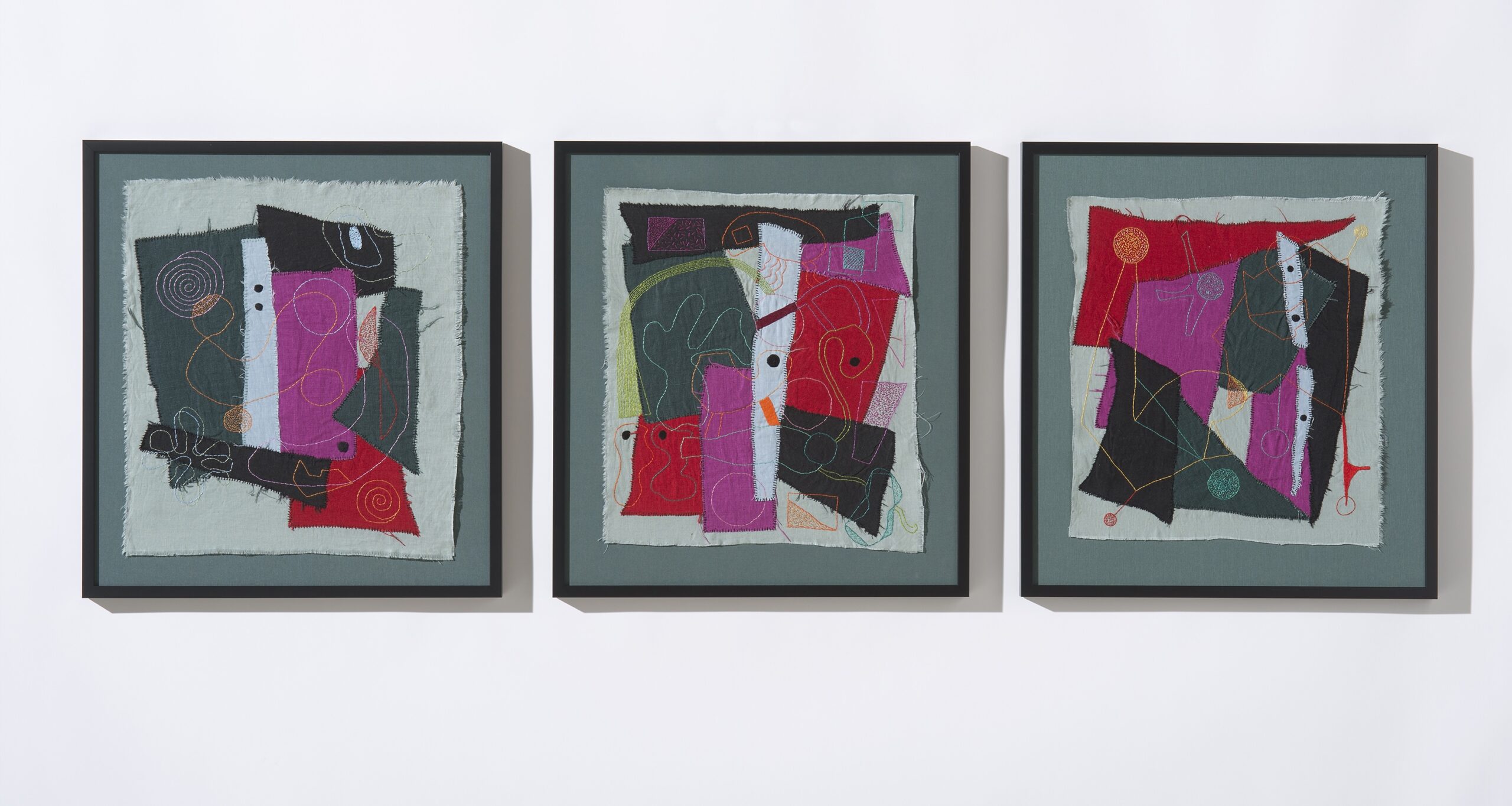 Linen, cotton, wool felt, cotton and polyester threads, steel 43 x 61 x 9