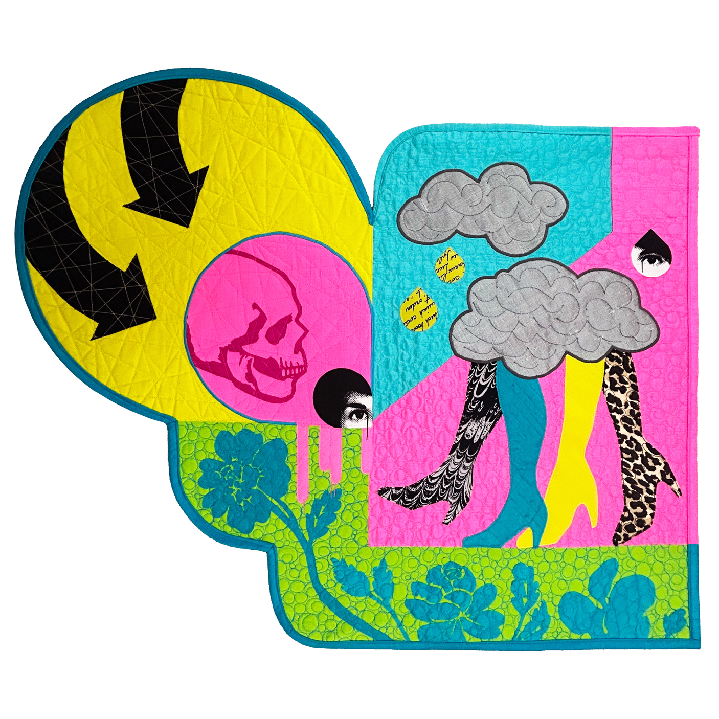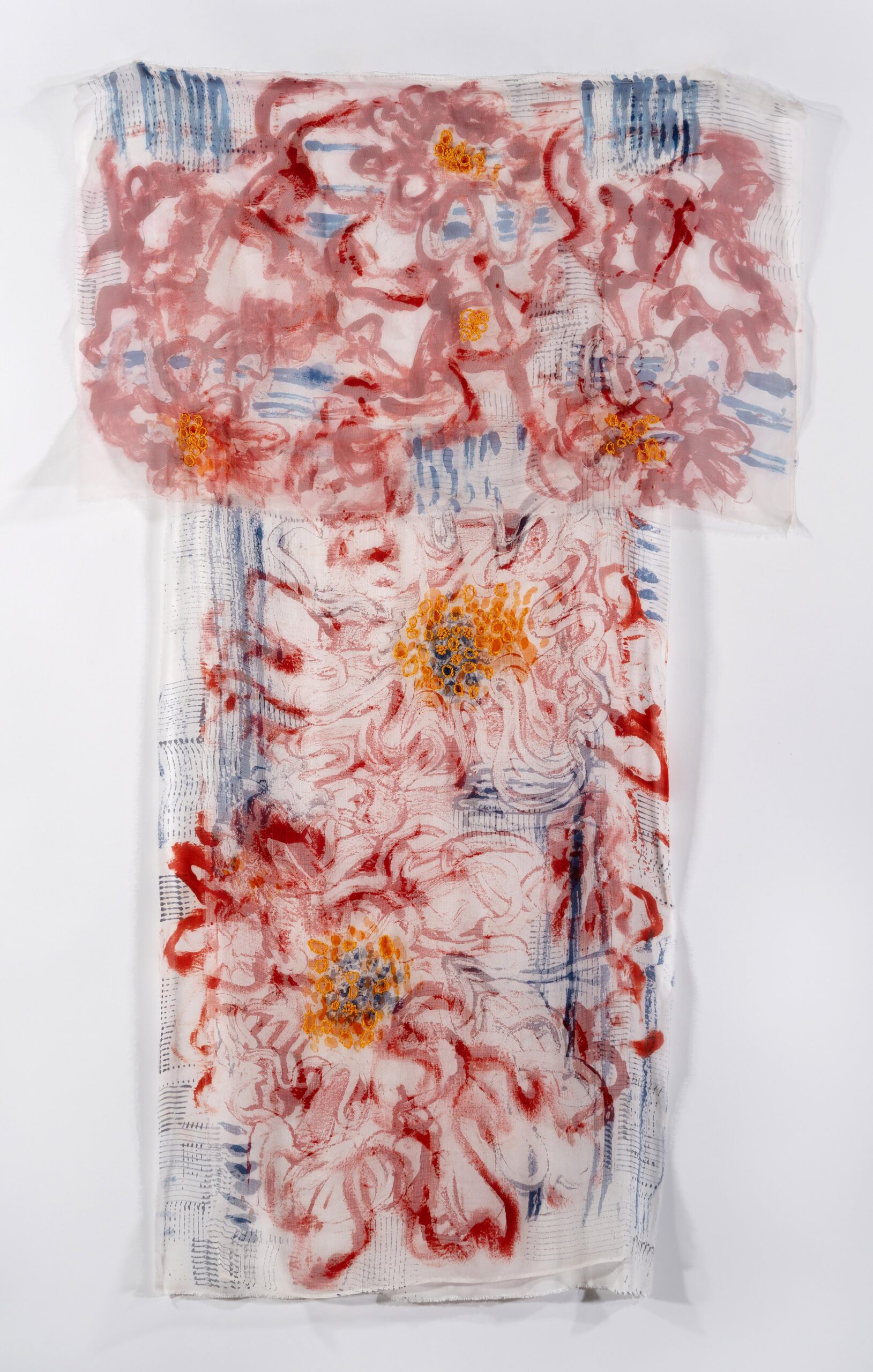 Thread on layered fabric, free-cut and free-stitched by machine 16 x 18 inches