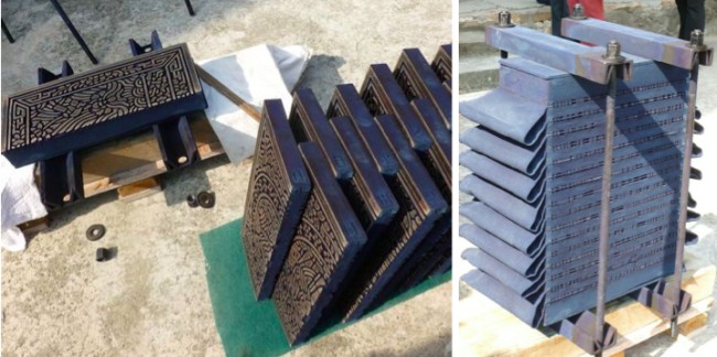 My colleague Jay Rich and I were both intrigued and came home to explore this idea in our own studios. In China, the blocks were carved in hard wood and kept wet to prevent warping. We were interested in how new technologies and materials could be used in the creation of blocks. Jay Rich was the first to employ a CNC router to cut the channels in plexiglass.