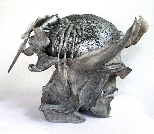 In other pieces, such as Burn Rubber, she incorporated Fosshape 300. (Fosshape 300 is a heat-activated, felt-like fabric for creating rigidity, stiffness and surface enhancement without the use of water, messy or hazardous additives. Find out more about it at wonderflexworld.com)