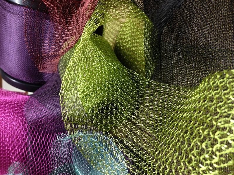 That marketplace (at wireknitz.com) now offers 3 knit styles – tight, medium, and coarse; 2 widths – 5/8” and 3.34”; and 2 wire gauges – fine and heavy. These features are combined in various ways across 5 wire types. A polyurethane enamel finish in a wide variety of colors offers creative choices, but WireKnitZ also comes in a non-coated (bare) stainless steel knit.