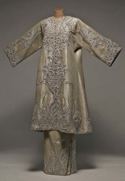Malaysian fashion designer Bernard Chandran (who dresses pop royalty like Lady GaGa and Rihanna – Ed.), gave the final lecture on the topic of court fashion, From Rock Concerts To Royal Thrones: Designing For The Royal Families Of Malaysia And Brunei. His theme and exuberant presentation, that included both music video and clips of runway models wearing his collection, was unquestionably the grand finale. Blending tradition with modernity, Chandran designs a stylish and sophisticated line of court dress for the royal women of Malaysia and the Sultanas of Brunei using embellishments like yellow ostrich feathers, glass beads, and chiffon to enliven the silhouettes of the traditional kebaya and kurung. (See more images of this opulent collection on New Straits Times website.)