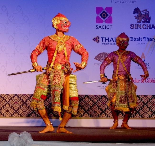 The symposium’s pièce de résistance occurred on the afternoon of last day when we heard a presentation on the modern revival of Khon, a masked court play performed by highly-skilled dancers popular in the early Bangkok period (1780s-1870s). The presentation was accompanied by a demonstration of the preparations the dancers undergo to perform in their roles.