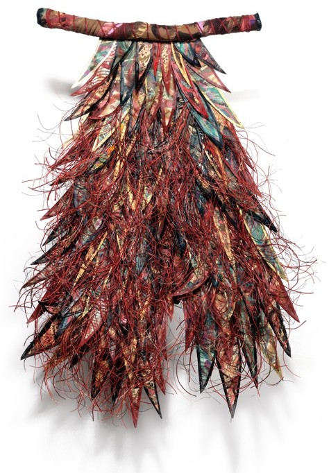 Kruger’s abstract work is inspired by feathers, birds and Amazonian tribal artifacts and expresses her concern for the destruction of bird habitat around the world. Using fiber, encaustic, oilstick, waxed linen and wire, she produces many-layered “textile paintings” that burst with energy, color and texture.