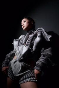Fiona Fan (she/her), Sculpted Body, 2024. Double bed knitting machine seric bonded nylon and elastomeric, 15 x 25 x 10 inches. Photo: Gavin Jin. Undergraduate, Rhode Island School of Design. behance.net/fiona0927fan | @fiona0927fan