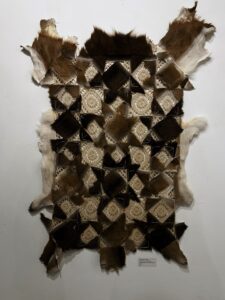 Hannah Kregel (they/them), Soft Hide of My Animal, 2024. Quilted deer hide and found crochet textile, 30 x 48 inches. Photo: Maggie Foster. Undergraduate, Georgia State University. @divine.delirium