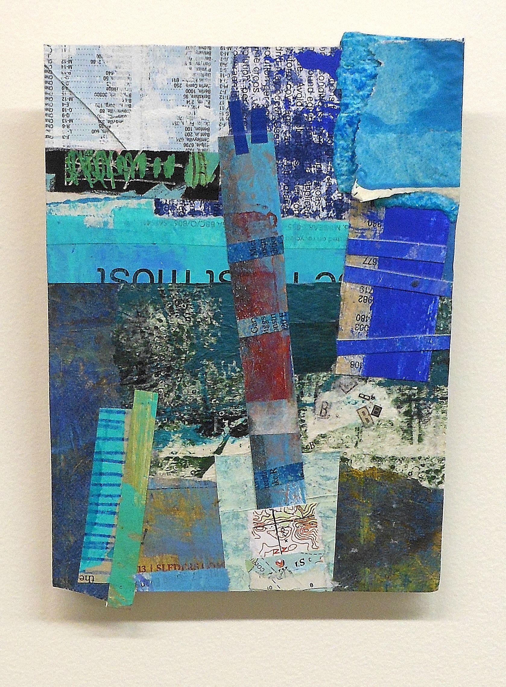 Materials: Painted, printed + altered papers. Painter's tape. Composition mounted on Luan substrate