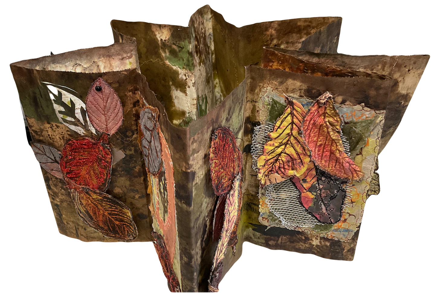 Image Statement: This piece has grown from my loves of leaves. I have drawn,photographed, scanned all these leaves at one time or another. Printing them with my Epson printer & machine quilted them individually. They are the fallen,imperfect, disintegrating leaves with absolutely gorgeous deep colour. Gathered from the ground underneath our Arbutus trees I believe they are exquisite and their structure has a similarity to us as humans. This piece has grown from my loves of leaves. I have drawn,photographed, scanned all these leaves at one time or another. Printing them with my Epson printer & machine quilted them individually. They are the fallen,imperfect, disintegrating leaves with absolutely gorgeous deep colour. Gathered from the ground underneath our Arbutus trees I believe they are exquisite and their structure has a similarity to us as humans.