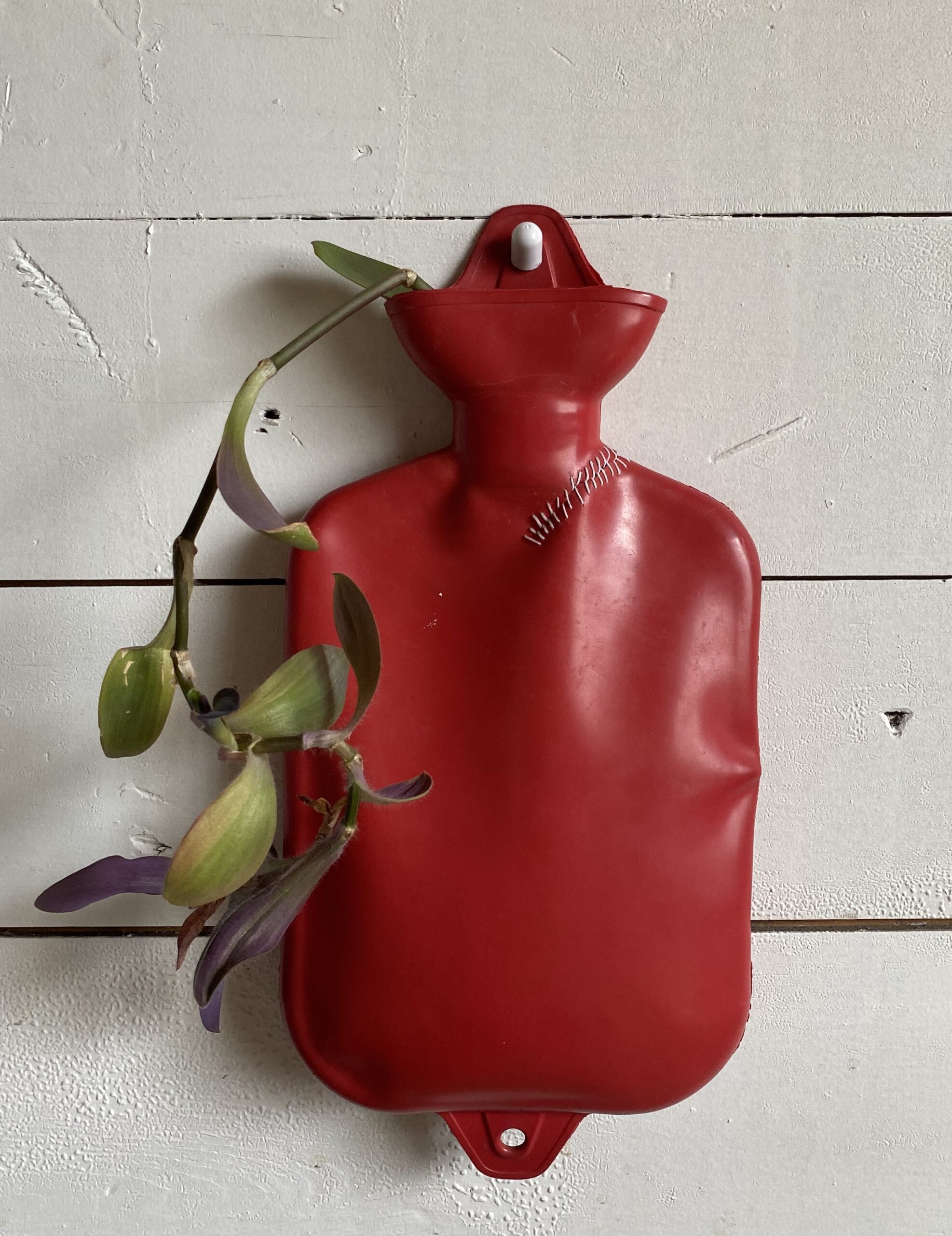 Materials: rubber water bottle, cotton thread, purple heart plant cutting