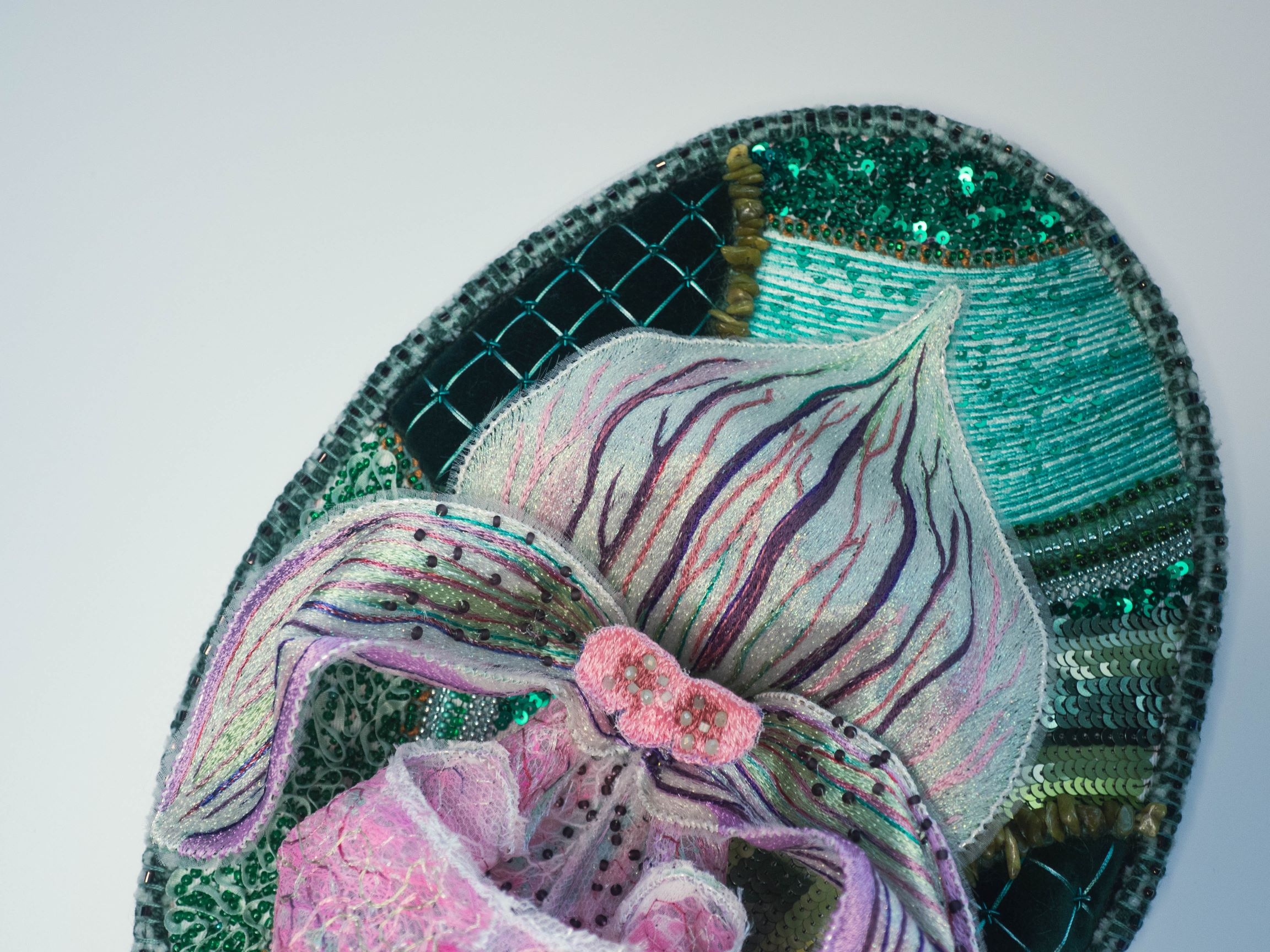 Materials: Metallic and cotton threads, sequins, crystals, textile