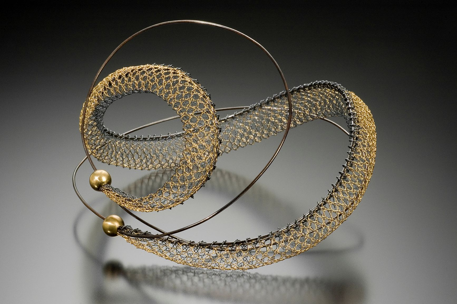 Materials: !4 Karat Gold Wire, Oxidised Sterling Silver Wire, Gold Beads