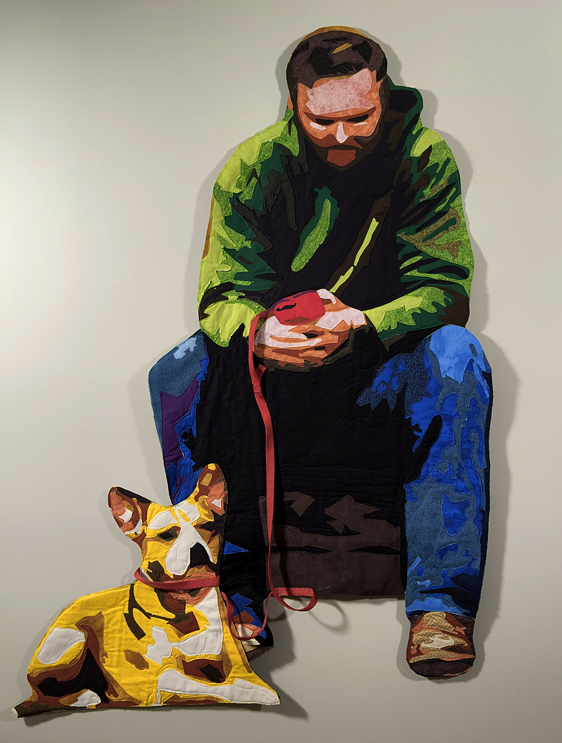 Materials: miscellaneous fabrics, dog leash, batting, thread