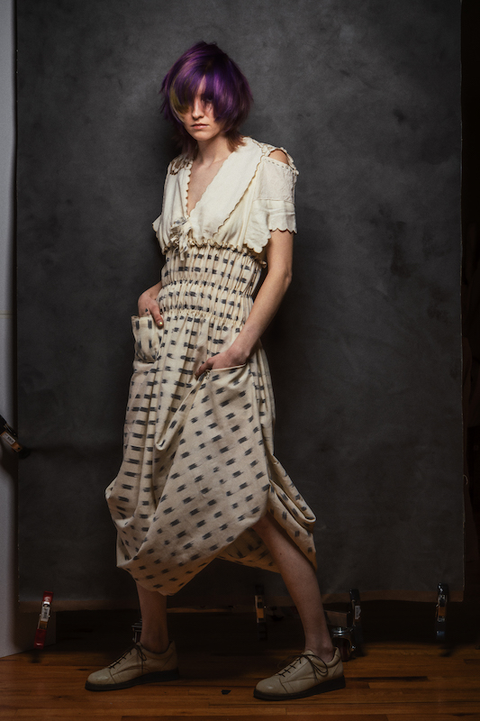 Materials: Ikat cotton fabric with vintage linen table cloth bodice