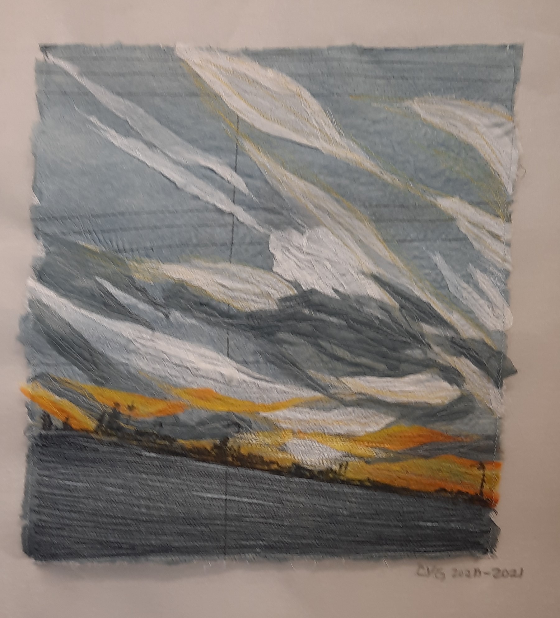 Materials: painted silk, paper and silk collage, machine stitching