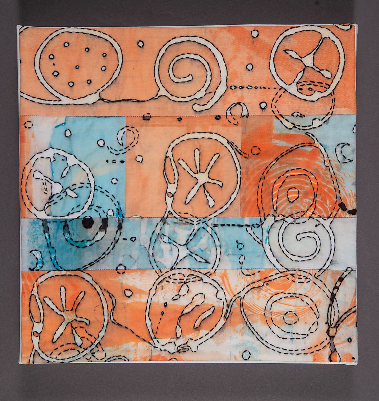 Materials: Deconstructed screen print, dyed, embroidered, cotton