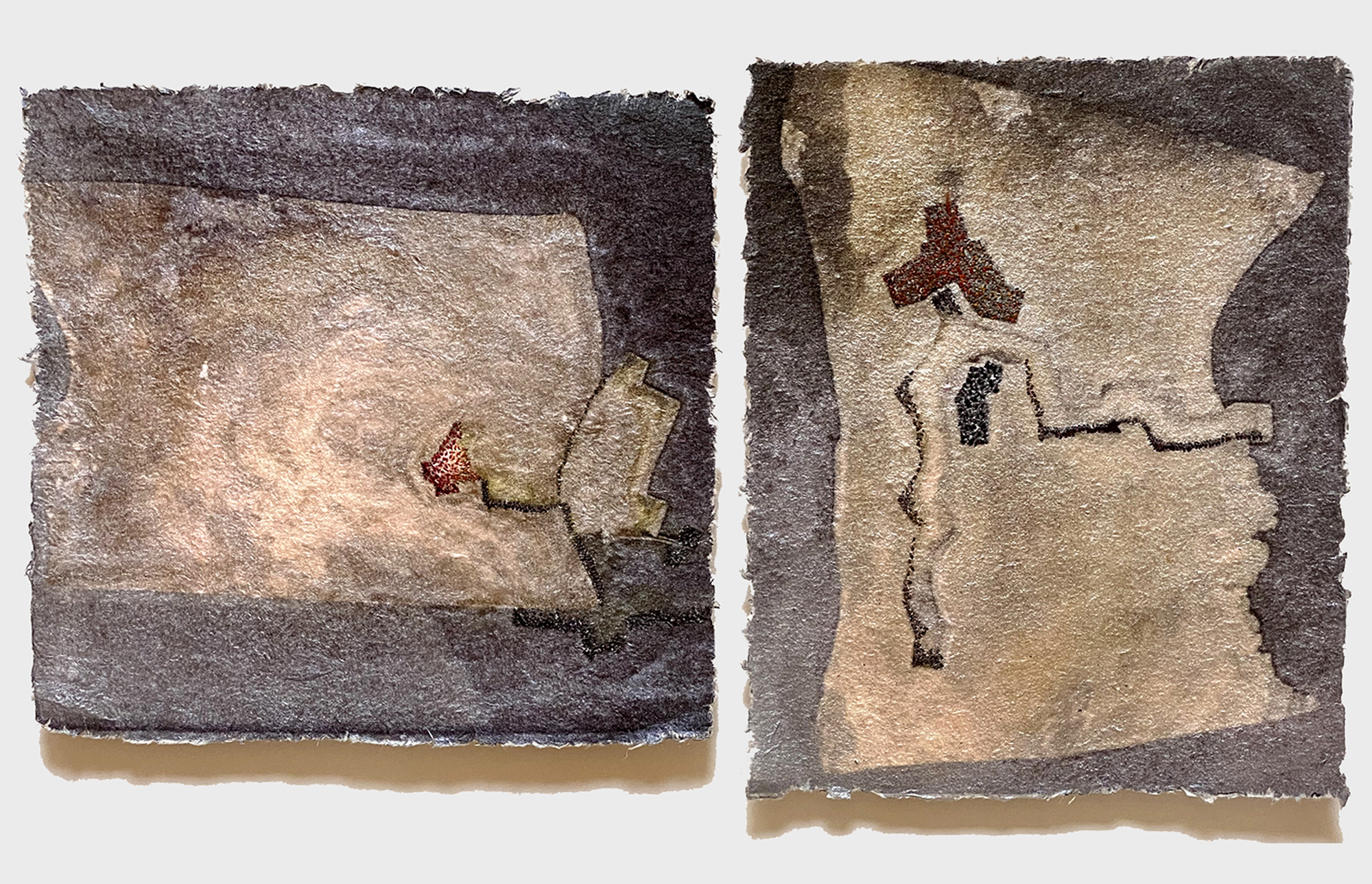 Materials: archival pigment mono-prints on specially coated paper-artist handmade in Oaxaca; stitched with silk thread;