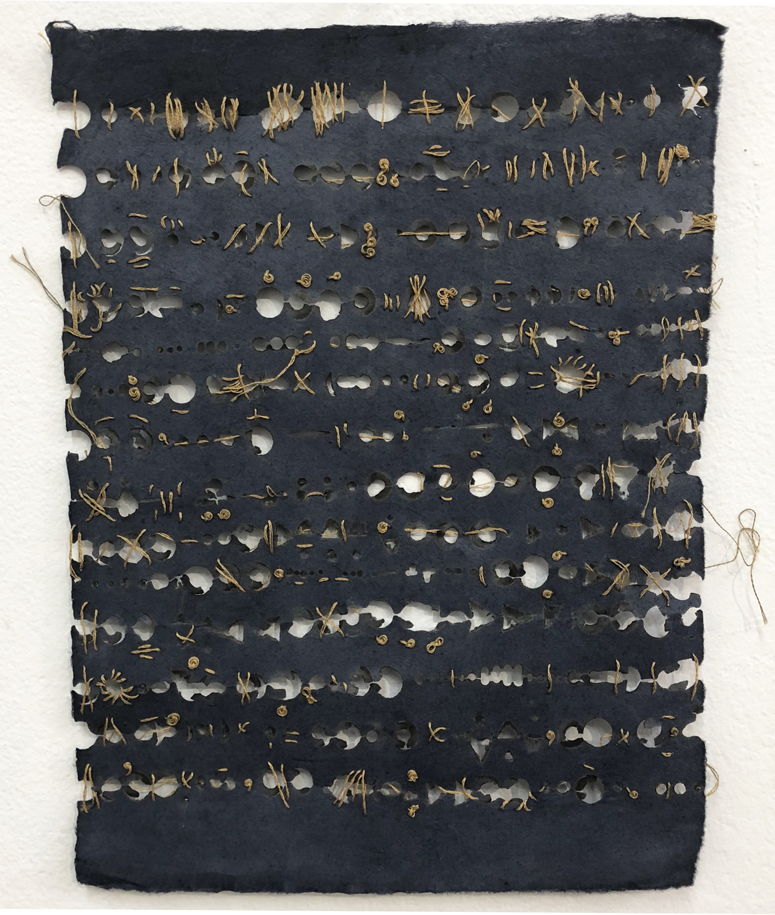 Materials: burned, oak gall ink dyed, asian paper with thread stitching