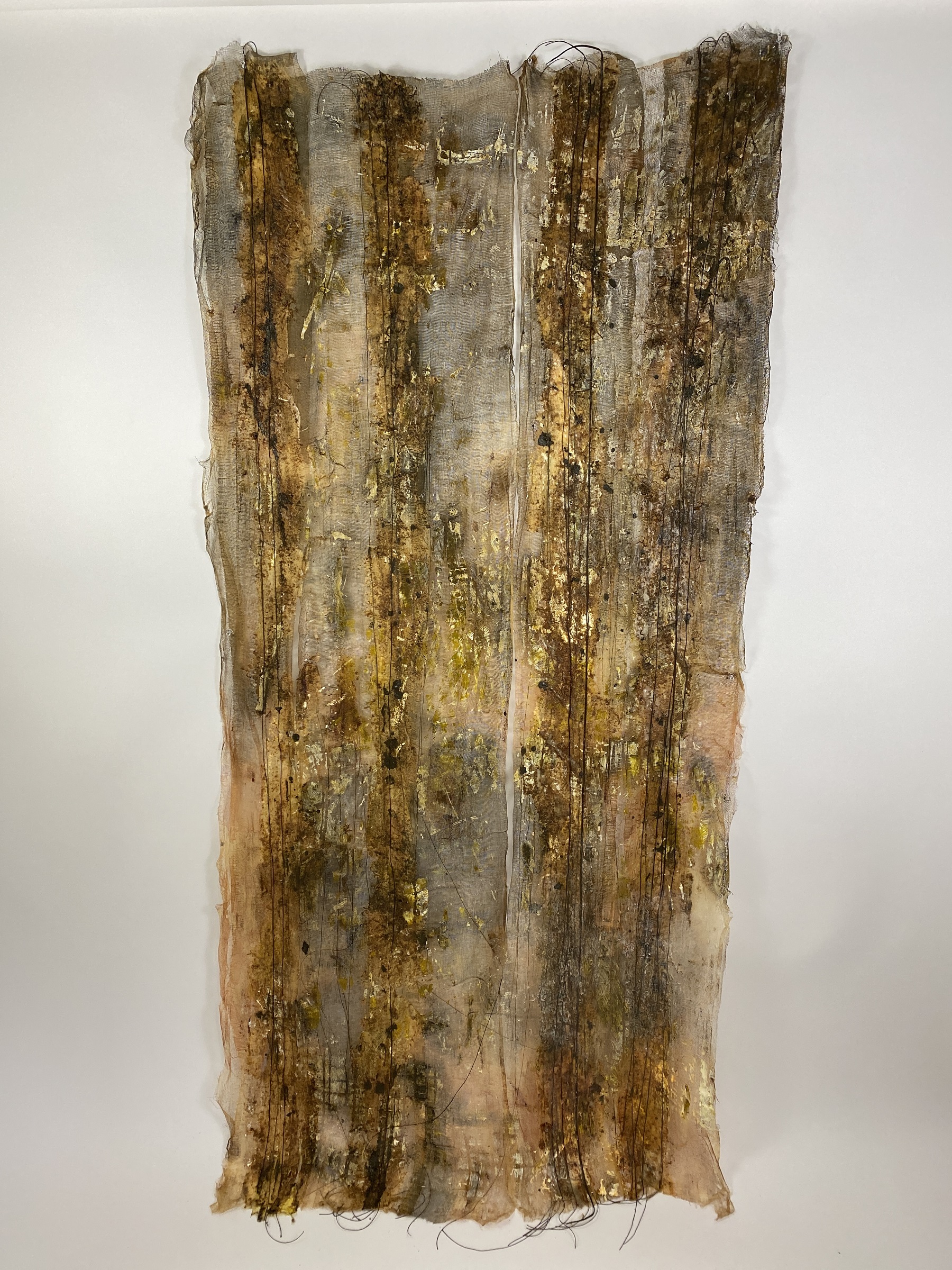 Materials: Cheesecloth, acrylic, sawdust, string