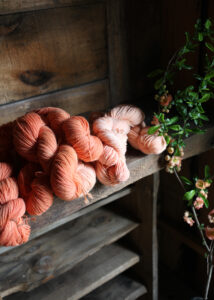 Madder-dyed, 2-ply Icelandic wool yarn, The Farm at World’s End, 2020. Photo: Sarah Ryhanen.