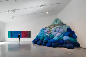 In Review: “Sheila Hicks: Off Grid” reviewed by Janis Jefferies: “Drawing together more than 70 works from public and private collections, Off Grid spans Hicks’ career from her earliest works made in the 1950s to new site-specific indoor and outdoor commissions… What is most striking is how Hicks’ sculptures radiate chromatic energy with gorgeous bulks of yarn and cotton thread, fashioned into exuberant cascades of linen and tasseled edges.”
