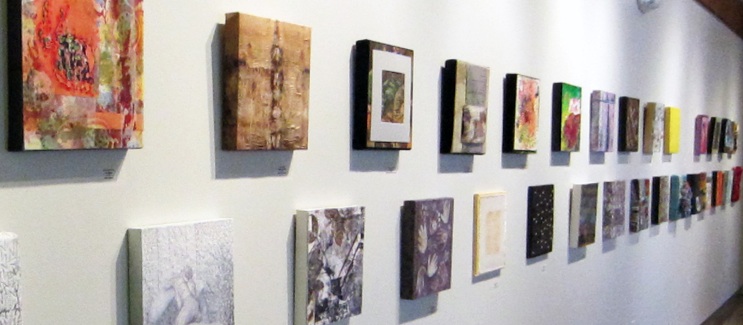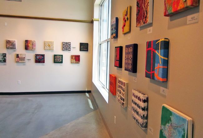 I’ve seen many SDA member’s shows during my 37 years as an SDA member; this 2013 show hit a sweet spot of format + venue. The 12″ x 12″ works hung in double and triple rows around the changing angles of the space really amplified the textile talent assembled there. It was a delicious challenge to first agree on the judging criteria and then draw on my 30 years of textile and fashion design experience to deliberate with Marci to select 6 awardees.