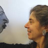 Adrienne Sloane (from Watertown, Massachusetts) comments: As a long-time SDA member (and MA/RI regional representative), I like the challenge of the bi-annual formats, which often inspire me to think differently about how to approach my work. The conundrum I set for myself this year in thinking about knitting and a 12” by 12” canvas was to come up with a textural and painterly approach. My recent work with I-cord and wire inspired a natural transition to conceiving of each length as a paint stroke.