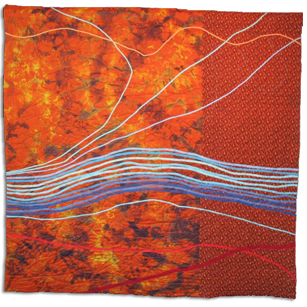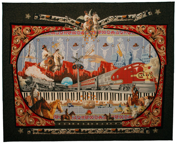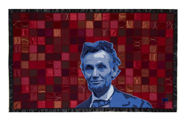Here is a piece of mine from Joe’s book. My work is inspired by my career as an architect and designer. I have little knowledge of quilting histories and the methods used by generations before me. I pull from design and pop-art for my ideas. My colors are used to build depth and form – to allow me to create figures out of fabric.