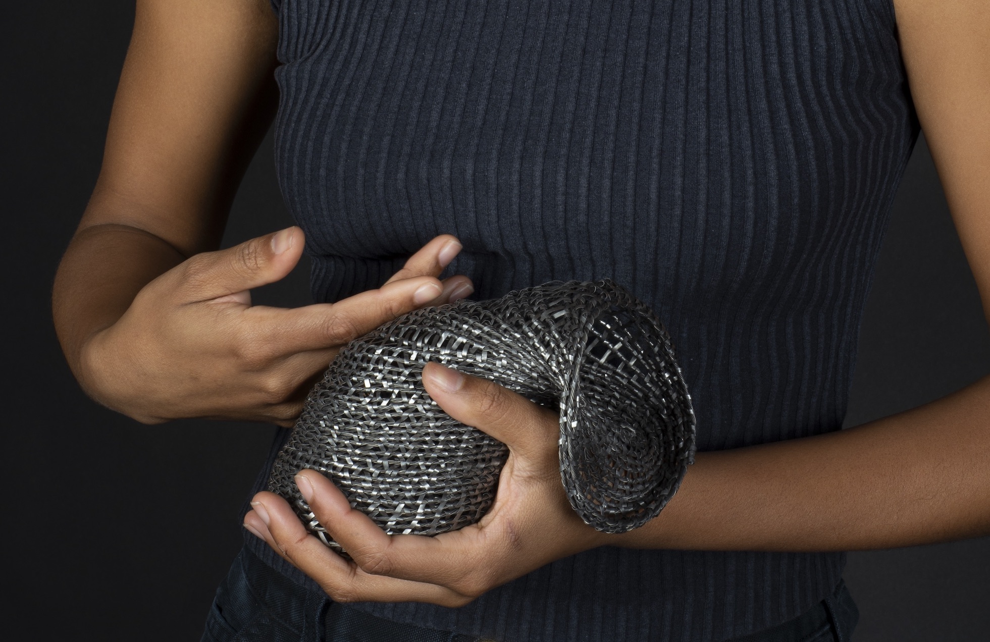 Aminata Conteh is Metalsmith whose practice hybridizes the histories and traditions of Metalsmithing & Jewelry with basketry weaving. Her work draws inspiration from the collapsing histories that exist between her lived experience as a first generation American and her Sierra Leonean lineage. Conteh received a BFA in Metalsmithing & Jewelry from Maine College of Art & Design and she is the recipient of a 2021 Wingate Lamar Fellowship from the Center for Craft in Asheville, North Carolina.