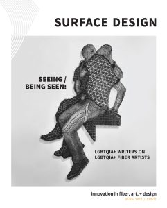 Surface Design Association is excited to announce Seeing / Being Seen: LGBTQIA+ Writers on LGBTQIA+ Fiber Artists, our Winter 2023 edition of Surface Design Journal. Led by Guest Editor, Rebekah Frank, this special edition of the SDJ focuses on LGBTQIA+ writers exploring LGBTQIA+ artists, highlighting the complexity of intersectional identity and how it informs creative practices in fiber at a time when LGBTQIA+ rights are increasingly under attack.