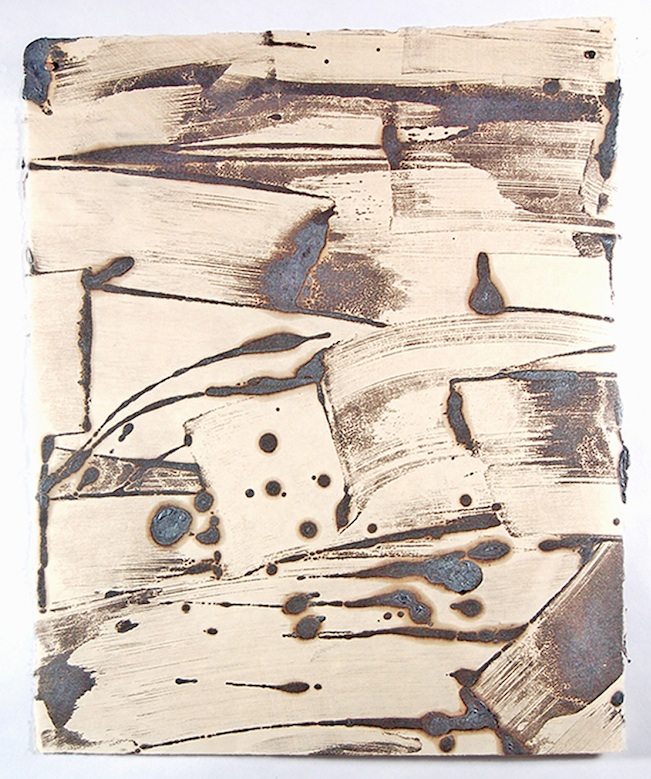 With experience, encaustic printing proceeds intuitively. An artist working in encaustic monotype learns to improvise, responding to the molten wax, adjusting body movements, constantly assessing the heat and other variables to guide – but not determine – the outcome.
