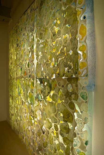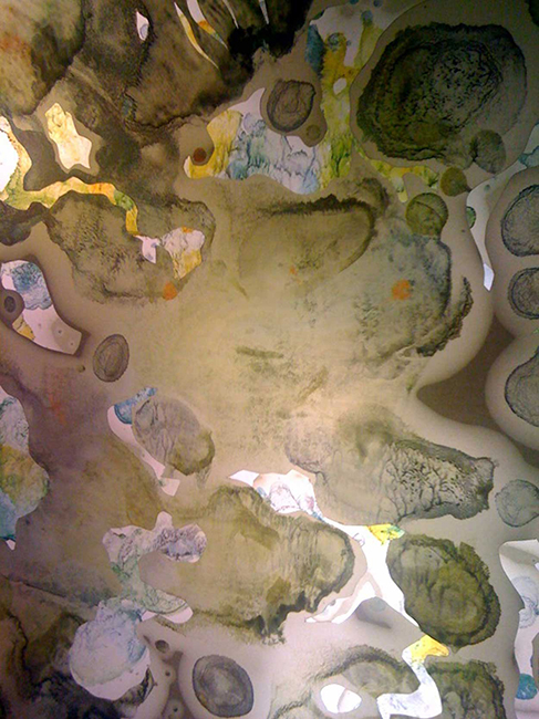 The mercurial aspects of the molten wax itself supported my interests in natural forces, systems and the sciences that illuminate them. Through research and experimentation, I learned that wax strengthens and seals paper. This enhanced strength and durability opened possibilities of working large or 3-dimensionally. Wax also renders paper translucent, allowing the transmission of light.