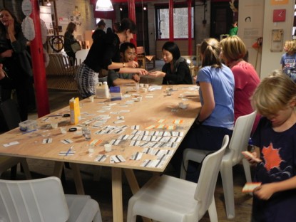 The first time I led this workshop was almost 5 years ago at 100% Materials (London Design Festival) in an open public space. Most of the crowd consisted of product designers; 2 particularly excited toy makers from Hasbro stayed until the very end, full of questions. It was a very energizing experience. The table was set up in the middle of 2 busy corridors, yet many people set their bags down and joined in. In recent years, the participants have mostly been electronic media artists who are more experienced in magnetic interactivity, but are new to textiles. I’ve also taught modified versions of the workshop to kids.