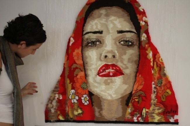 Firat Neziroglu exhibited his large, innovative tapestry works in the building next door. Neziroglu sets off the main body of his work by filling in only portions of the nylon filament warp. He then projects changing video images onto the work and lets the white wall behind the piece act as a screen. His work provided an added an innovative dimension to the exhibitions as a whole.