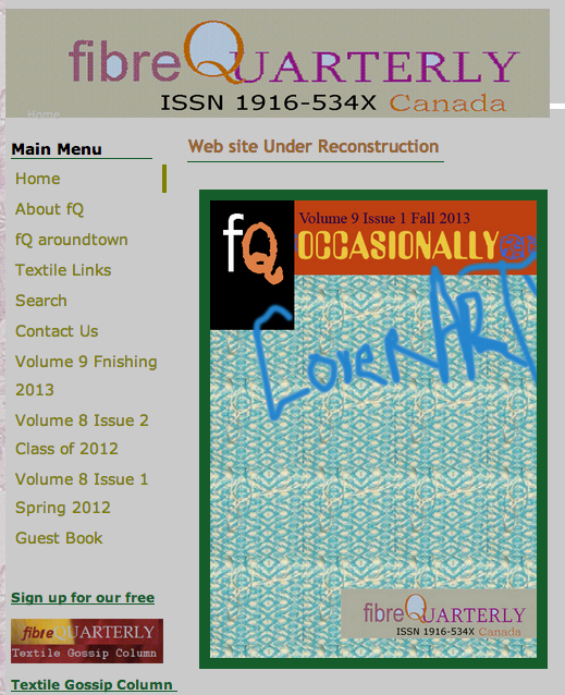 As a publisher, he has been presenting Canadian textile/fibre arts, crafts and history to an international audience via his online fibreQUARTERLY at www.velvethighway.com