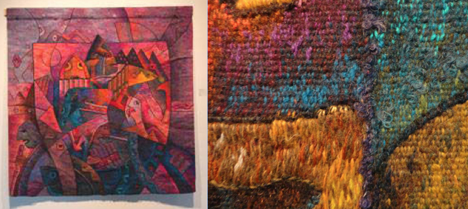 In the work of Beauchemin you see the height of experimentation – with a mix of traditional and new materials like wool, metal and optic fiber – that has not been matched. New Art of the Loom was curated by Dirk Holger, a tapestry artist of the Aubusson School and the last assistant of Jean Lurçat, the Frenchman who re-imagined the concept of tapestry weaving for the 20th century. He is known for liberating the weaver to work from his own design/cartoon rather then making the work of others. This show is currently on a North American tour; this stop was 1 of 2 in Canada and planned to coincide with the Triennale.