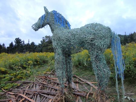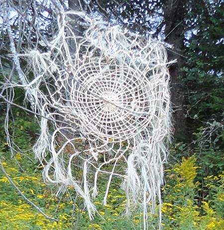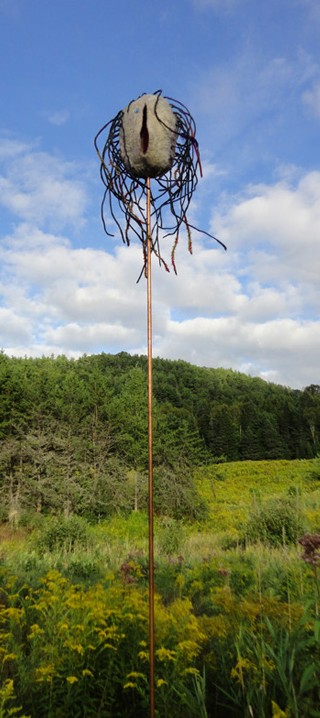 At the end of a 60 mile drive to Moonrain Centre was Matrices, the exhibition of outdoor installations created on site prior to the festival’s opening. These were on view along a walking trail marked out on the property. A “tradition” of showing this non-traditional site-specific work has been established; this approach is also called outdoor interventions, artist gardens, knitting graffiti, earth art or botanical sculpture – with or without performance.