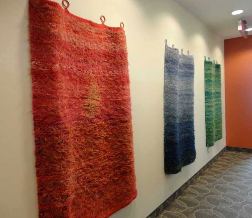 There were 3 “anchor” shows in the Triennale: Matrices, the outdoor installations at Moonrain Centre, Homage to Micheline Beauchemin, Quebec’s Master Weaver at Espace Pierre-Debain (a small retrospective showing work by the Canadian master weaver who passed way in 2009) and New Art of The Loom at Galerie Montcalm. The 2 gallery exhibitions, both in Hull, Quebec, showcase tapestry weaving at its best and provided a centre from which to view the work of all other makers participating in the festival.
