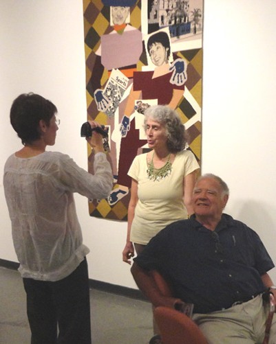 Maffei’s work, while equally stylized, is brightly colored, cluttered interiors in which each portrait of the sitter is presented with the section of the New York Times that best represents their personality. Family and friends come to life in these tapestries. The co-presentation of these 2 bodies of work – one subdued, one nearly garish – worked very well together.