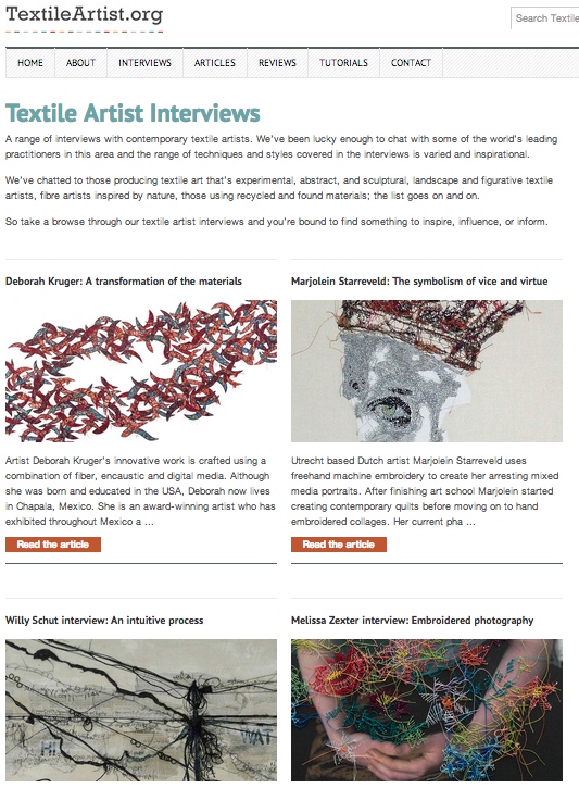 The resource we’re building is not only about artistic inspiration; we are committed to helping artists get the most out of their work once it is made. That’s one of the reasons we started the web design strand of the site at websites.textileartist.org to build online promotional platforms for individuals to specifically showcase their textile art.