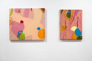 Monica Mohnot, Whimsy Series #6 & 7, 2023. Hand-woven cotton on jacquard loom