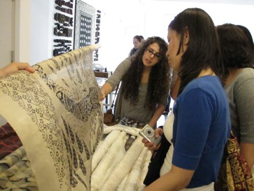 Visits to contemporary textile and costume designers enabled the students to see how the past can inform and inspire the present. At the Vakko textile factory we observed how imperial Ottoman patterns and motifs are adapted for the contemporary market using modern silkscreen technology. Meeting fashion designer (with a Ph.D. in chemistry!) Gönül Paksoy was a great inspiration for the students who enjoyed hearing about her process for naturally over-dyeing vintage fabric that she transforms into works of contemporary fashion.